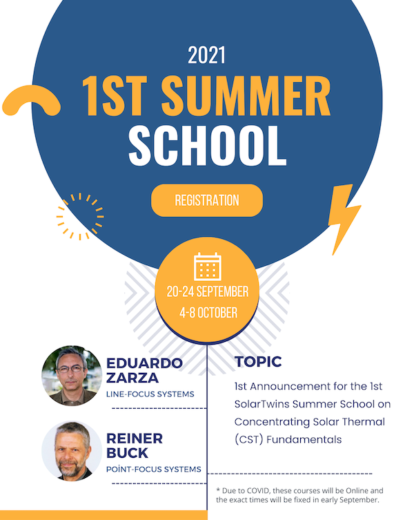 1st Announcement for the 1st SolarTwins Summer School on Concentrating Solar Thermal (CST) Fundamentals